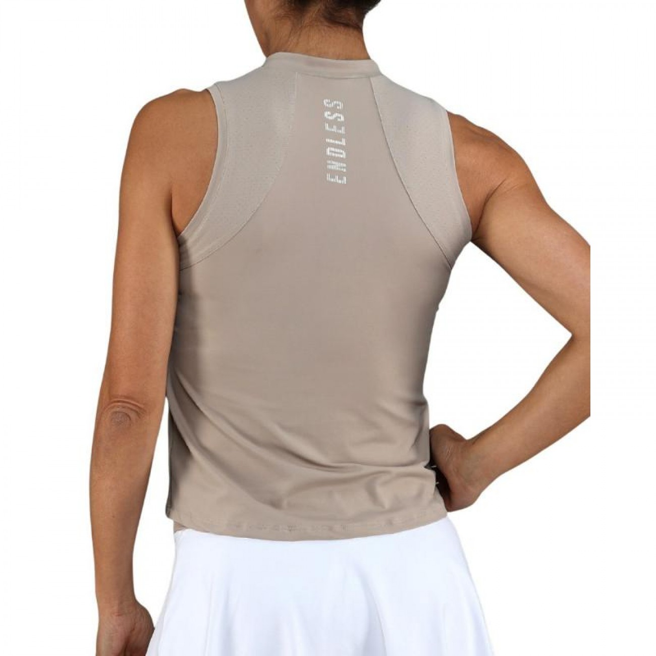 Su diseño sin mangas, con cuello sofisticado y cremallera invisible, estiliza la silueta y aporta un acabado impecable, mientras su tejido técnico ultra ligero se adapta a cada movimiento con total naturalidad.