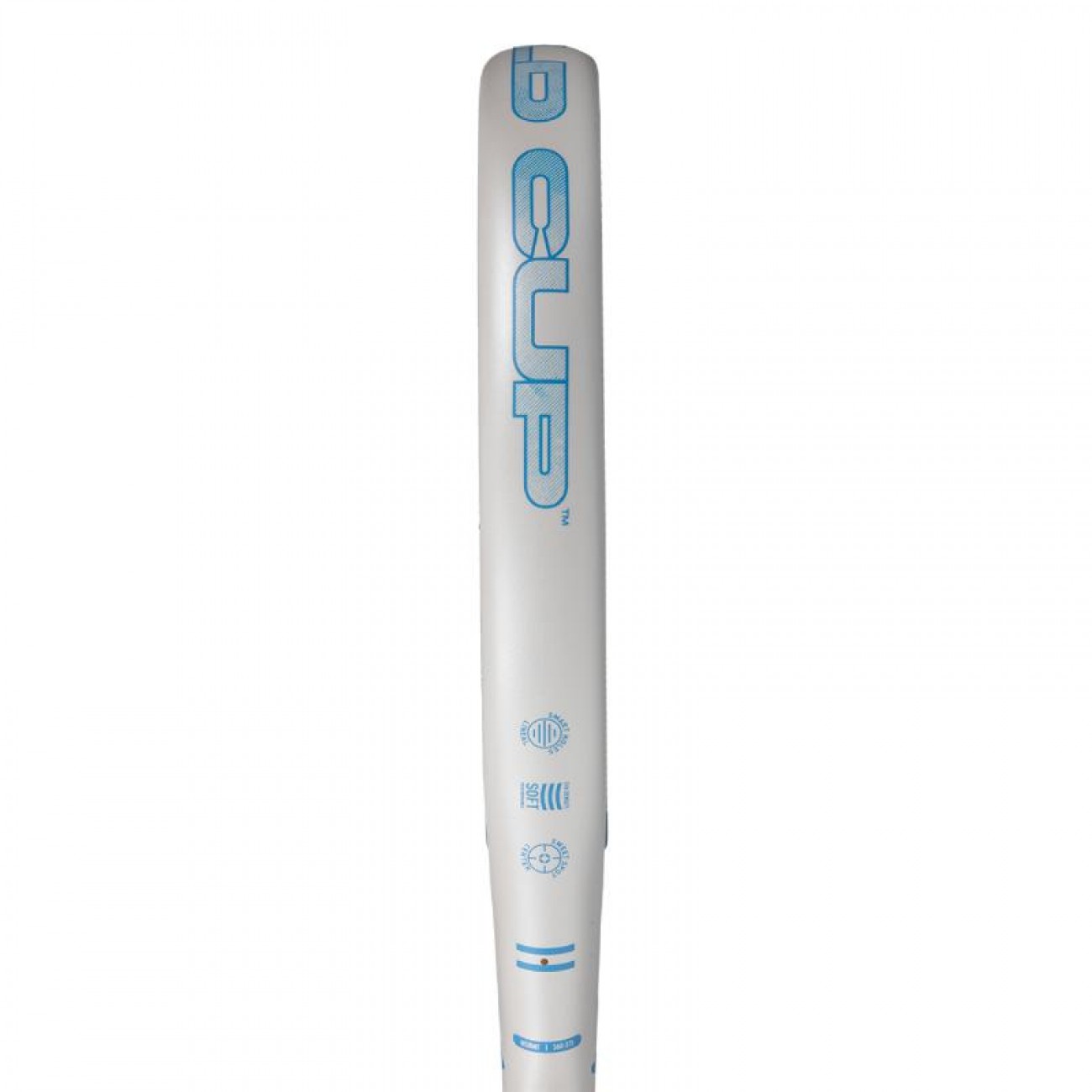 Construcción con fibra de vidrio en marco y caras, brindando una excelente salida de bola y sensación suave al impacto.